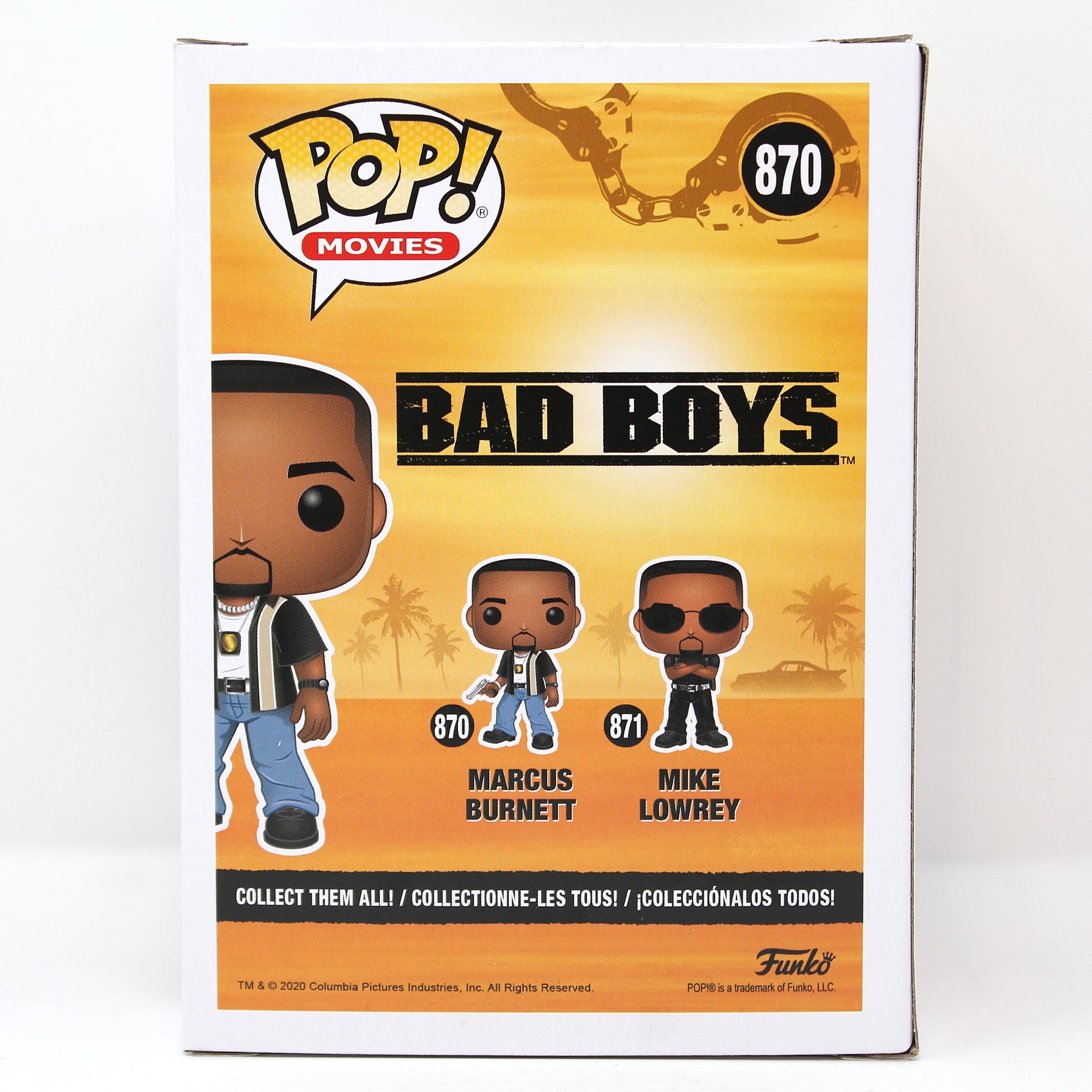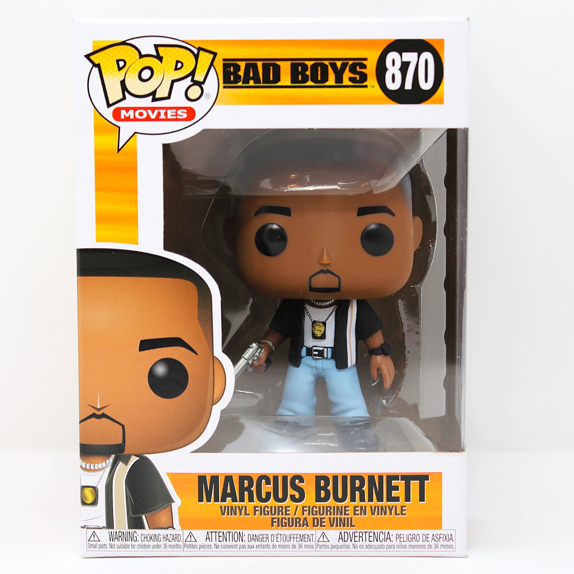 Franchise: Bad Boys Character: Marcus Burnett Pop #: 870 Display Tip: Display Marcus directly beside Mike Lowrey to create a clean two-Pop centerpiece, or place him in front of other action icons to highlight the duo-driven vibe of the franchise.