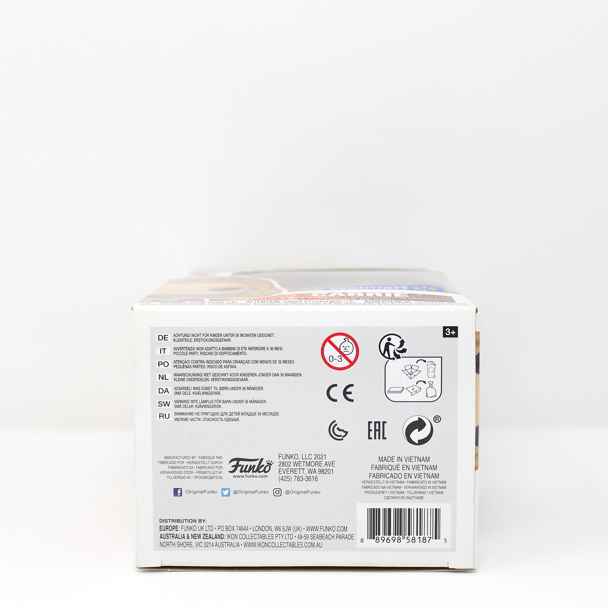 Franchise: Carrie Character: Carrie Pop #: 1143 Variant/Exclusive: Walmart Exclusive Display Tip: Display her near other Stephen King adaptations or classic horror icons, and keep her at eye level so the figure’s expression and outfit details become the focal point through the box window.